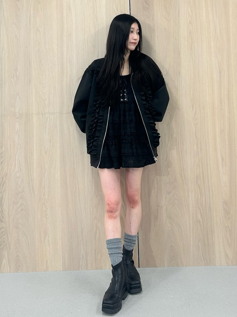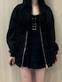 アウター 163センチでお尻隠れるサイズ感です! トレンドのトラックジャケットもフリル付きなのでカジュアルすぎずにガーリーさんにもぴったり! ブラックで使いやすいけど、シンプルすぎず着回し抜群です♡ ワンピース アジャスター付きで長さ調整可能! 胸元のデザインとレースの透け感で重たすぎずに春夏大活躍です!