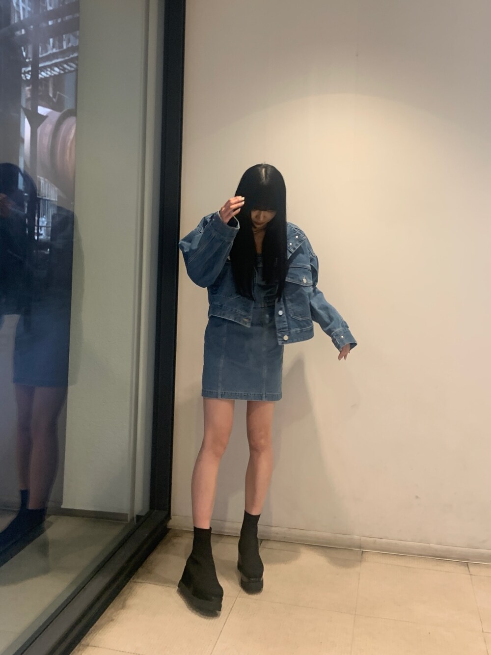 成田すみれ(MURUA)のデニムジャケット「ラウンドヘムBIGポケットGジャン」を使ったコーディネート