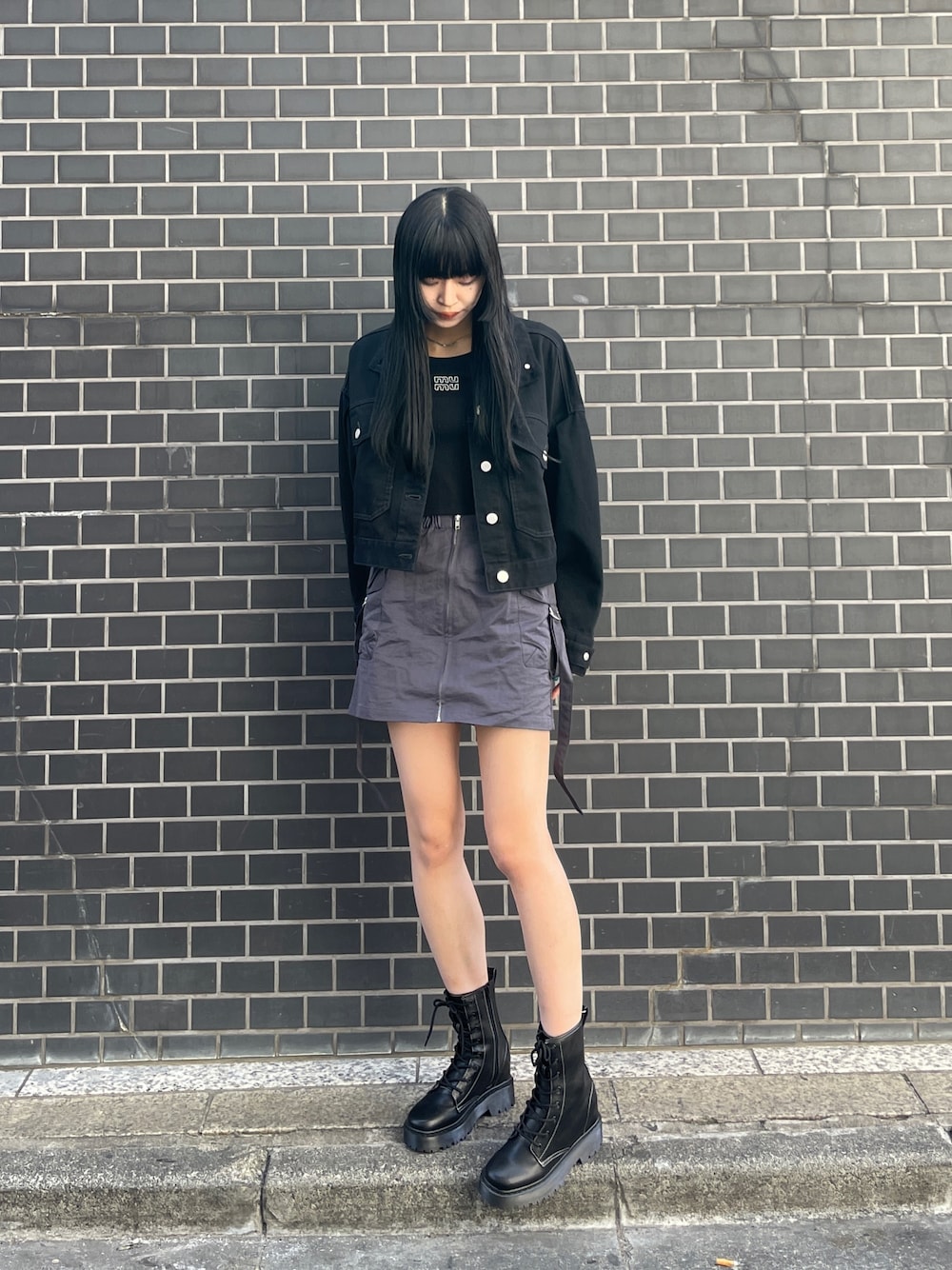 成田すみれ(MURUA)のデニムジャケット「ラウンドヘムBIGポケットGジャン」を使ったコーディネート