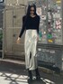 【トップス】MURUAらしいデザインニットです。さらっとした素材でチクチク感もなく春先も使いやすくなっています!一枚でもインナーでも活躍します! 【スカート】ジップの位置を360度好きなとこに変えられてスリットの深さも調節できるフェイクレザースカート!柔らかいレザーで履き心地良く、ウエスト腰のラインがしっかり見えるので着痩せします!171cm普段通りMサイズ着用して、ブーツにかかるくらいの長さです! 【ブーツ】普段25cmで24.5cm履いています。気持ち大きめの作りでヒールの前後差もなく軽いので疲れにくいです!