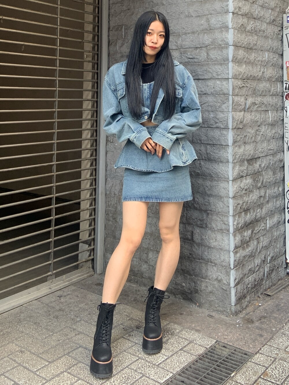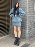 【アウター】171cmFサイズ。セットアップ対応のデニムジャケット。柔らかく中も着込めるルーズ感で単体使いも大活躍します! 【ビスチェ】171cmFサイズ。セットアップ対応のビスチェ。前でジップで止めるタイプでコンパクトな作りです!丈も短めなのでスッキリボトムス選ばずに着られます! 【ニット】171cmFサイズ。私の身長だとかなり短めです。インナー使いでも一枚でも使いやすいコンパクトな作り。 【スカート】171cmSサイズ。上のひらひら部分は取り外しが簡単にできますので、シンプルなタイトスカートとしても使えます! 【ブーツ】普段24.5~25.0cmで24.5cm着用ぴったりくらい。ヒールのない厚底で疲れにくく、足首まですっきり見えるタイプのレースアップブーツです。