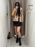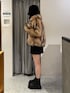【アウター】171cmFサイズ。首元まで止められるのでマフラーいらず!他と被らない柄のファーコートです! 【スカート】171cmMサイズ。タイトすぎず広がりすぎず絶妙なシルエット。インナーパンツ付きでミニでも安心! 【ブーツ】普段24.5~25.0cmの24.5cm着用。ジャスト。フラットな厚底なので疲れにくい!