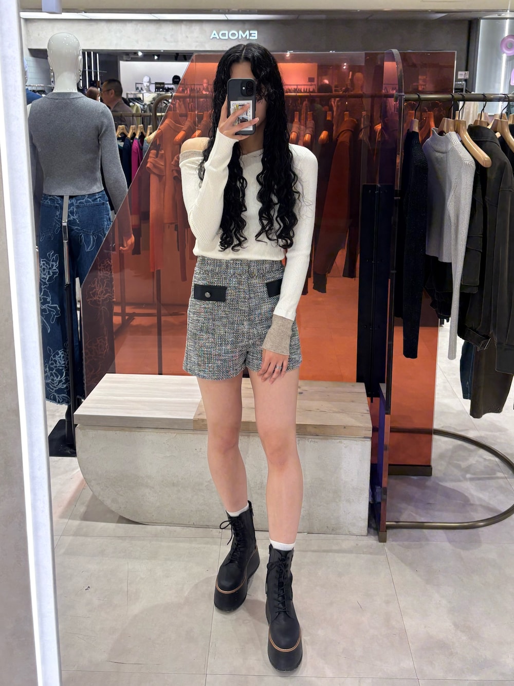 【トップス】171cmFサイズ。ワンショルなのでギャルっぽくもならずに肩出しができます! 【ショートパンツ】171cmMサイズ。丈少し短めですが、コンパクトで腰周り綺麗に見えます! 【ブーツ】普段24.5〜25.0cmの24.5cm着用。ジャストサイズ。フラットな厚底で盛れるし軽いし歩きやすいです!