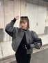 【outer】 トレンドのバイカーブルゾン。軽量感のある素材で長時間着ても疲れにくいアイテム。ボリューム感もあるので、分厚めのニットでも着用◎ 【onepiece】 縦リブになっているので、細見え効果◎ 伸縮性もかなりあるのでタイトすぎず着用できます。