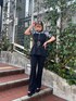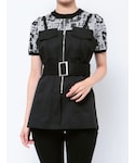【tops】 タイトなシルエットのハーフスリーブニット。 MIX柄のデザインなのでジャンスカやビスチェのインナーにも◎ ビスチェのウエストマークもベルトで調節が◎ タイトなシルエットで裾あたりは広がりがあるデザインで◎ 【pants】 ストレッチ素材でストレスフリーの着用感。 お尻周りが隠れてぐらいのトップスと合わせると◎センターパーツも入っているのでかなり細見えしてくれるパンツです!