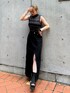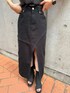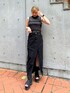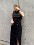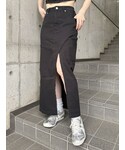 【tops】 ラメ糸で存在感のあるトップス。 着心地もよく、ジャンパースカートのインナーやジレのインナーに重ね着も◎ 【skirt】 大胆にスリット入りのデニムスカート。 同じ素材のデニムビスチェとのセットや、スカート単品使いで秋ぐちにはニットとの合わせも◎