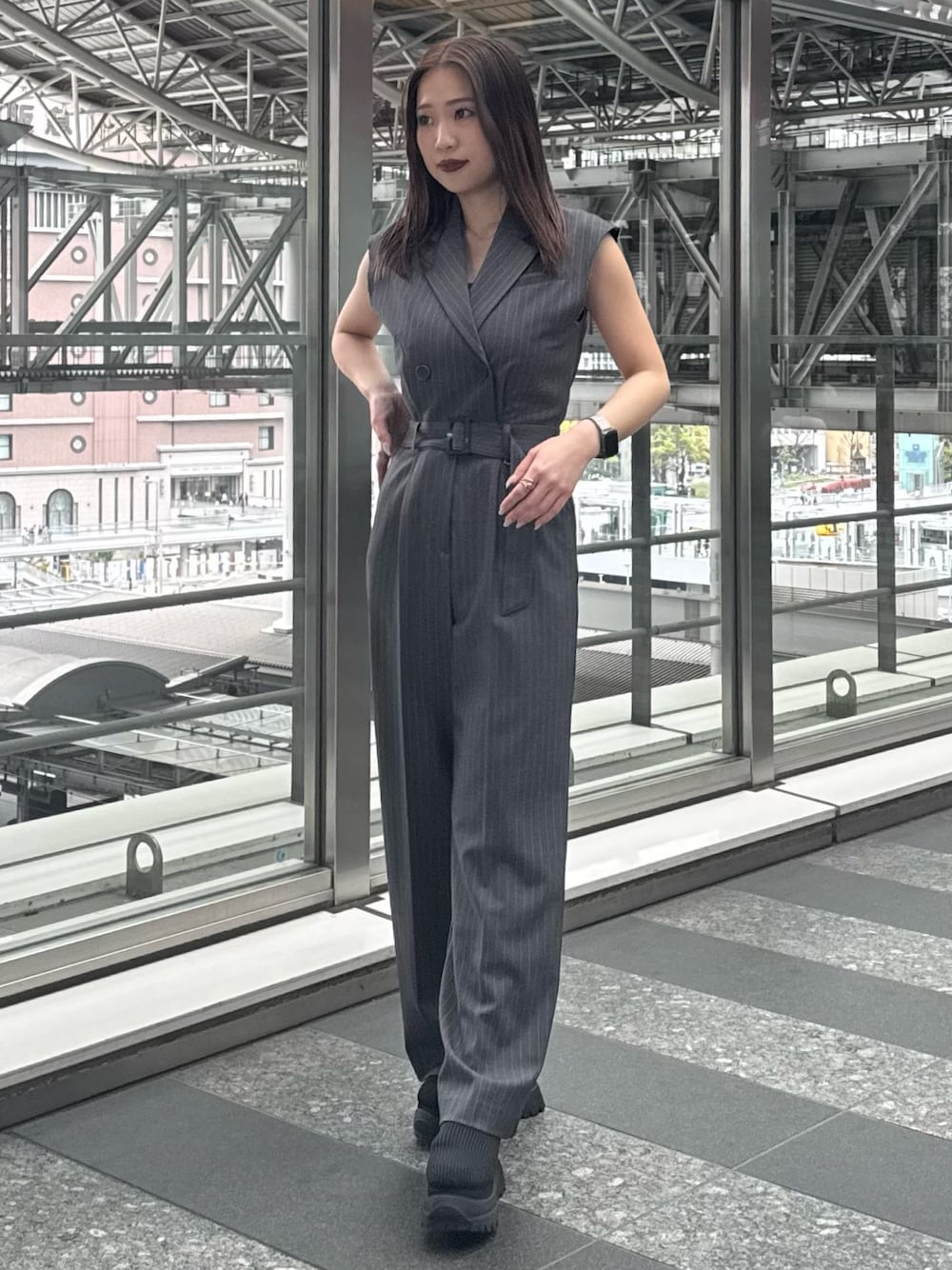 【オールインワン】 153cm/Sサイズ着用しており、丈感は足首につかるくらいで厚底サンダルなどで合わせるとよりスッキリ着用して頂けます◎ 【シューズ】 普段の22.5cm着用で、横幅広めな私でもピッタリでした!傾斜がなくクッション性があり安定感のある厚底なので普段使いしやすくおすすめです◎
