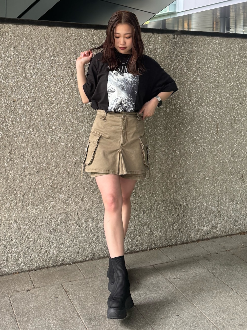 【tops】 153cm/Fサイズ着用しており、少しオーバーサイズなので低身長さんはボトムスとインスタイルがおすすめです! 【skirt】 153cm/Sサイズ着用しており、骨盤まわりが気になる私でもシルエットカバーしてくれます!丈感も短すぎず、ハイウエストなのでスタイルアップ間違いなしです◎ 【shoes】 普段の22.5cm着用で、横幅広めな私でもピッタリでした!傾斜がなくクッション性があり安定感のある厚底なので普段使いしやすくおすすめです◎