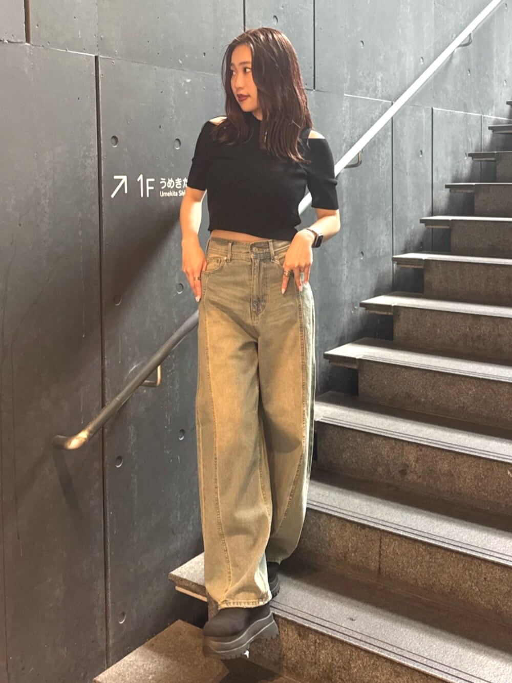 横幕学美(MURUA)のデニムパンツ「バレルレッグコクーンシルエットデニム」を使ったコーディネート