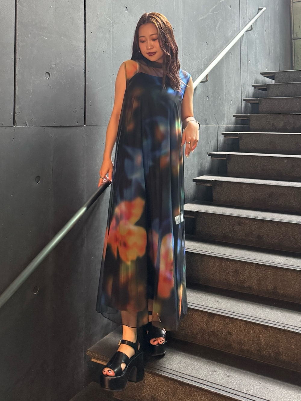横幕学美(MURUA)のワンピース「シェイドフラワーレイヤードワンピース」を使ったコーディネート