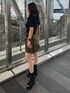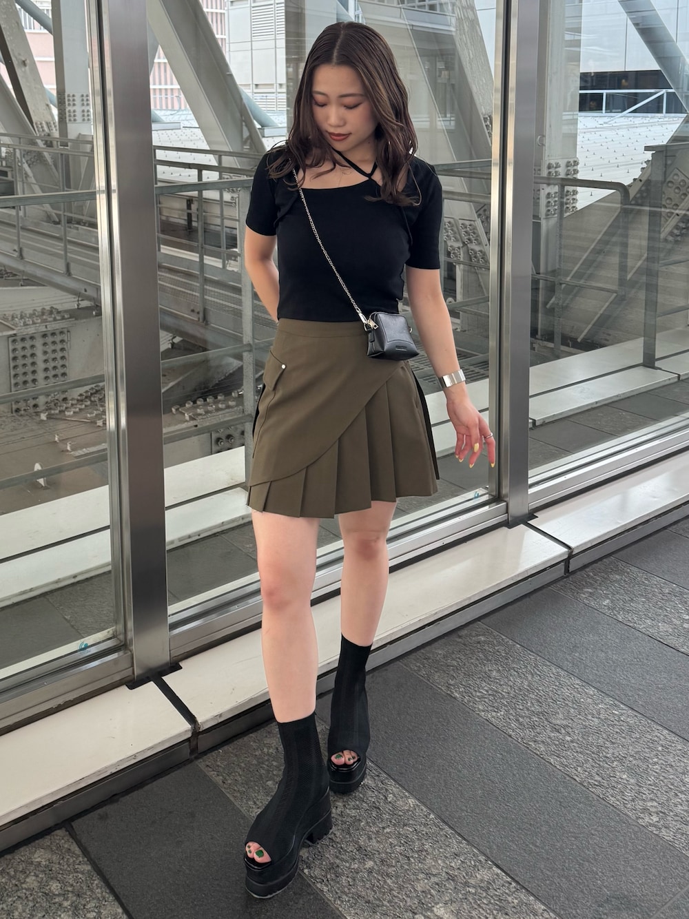【tops】 153cm/Fサイズ着用しており、チョーカー風のデザインが鎖骨まわりスッキリ見えしてくれます!タイトめなシルエットですが伸縮性あり◎ 【skirt】 153cm/Sサイズ着用しており、骨盤まわりが気になる私でもシルエットカバーしてくれます! ミニ丈なのでハイカットのサンダルやロングブーツなどの合わせがおすすめです! 【shoes】 普段の22.5cm着用で、横幅広めな私でもピッタリでした!前も高さあるので傾斜なく安定感がありとても軽く履きやすいです!
