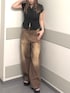 【tops】 153cm/Fサイズ着用しており、ウエストマークは少しタイトなシルエットなのでクビレが綺麗にでてくれます♡ 【denim】 153cm/Sサイズ着用しており、トレンドのコクーンシルエットで骨盤まわりが気になる私でもシルエットカバーしてくれます! 丈感は少しゆったりしていて長めなので厚底ブーツ合わせがオススメです! 【shoes】 普段の22.5cm着用で、横幅広めな私でもピッタリでした!前も高さあるので傾斜なく安定感がありとても軽く履きやすいです!