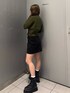 【tops】 153cm/Fサイズ着用しており、おへそ周りまで隠れてくれる丈感です。ダブルジップなのでスリット作ってあげるとスタイルアップに♡ 【skirt】 153cm/Sサイズ着用しており、骨盤まわりが気になる私でもシルエットカバーしてくれます! 秋冬にはロングブーツ合わせオススメです♡ 【shoes】 普段の22.5cm着用で、横幅広めな私でもピッタリでした!前も高さあるので傾斜なく安定感がありとても軽く履きやすいです!