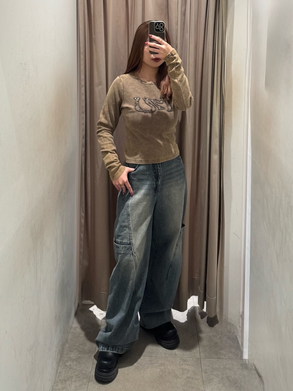 【tops】 153cm/Fサイズ着用しており、タイトめなシルエットですが伸縮性あり。おへそ周りまで隠れてくれる丈感です! 【denim】 153cm/Sサイズ着用しており、骨盤まわりが気になる私でもシルエットカバーしてくれるコクーンシルエットです! 【shoes】 普段の22.5cm着用で、横幅広めな私でもピッタリでした!前も高さあるので傾斜なく安定感がありとても軽く履きやすいです!