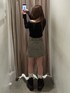 【tops】 153cm/Fサイズ着用しており、タイトめなシルエットですが伸縮性あり。鎖骨まわりスッキリ見え間違いなしです! 【skirt】 153cm/Sサイズ着用しており、少しタイトめなシルエットですが骨盤まわりが気になる私でもスッキリ着用できました! 【shoes】 普段の22.5cm着用で、横幅広めな私でもピッタリでした!前もさあるので傾斜なく安定感がありとても軽く履きやすいです!