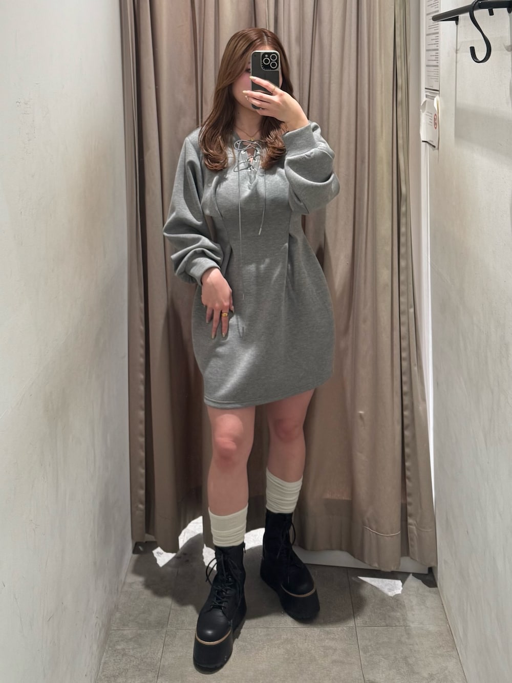 横幕学美(MURUA)のワンピース「デザインレースアップミニワンピース」を使ったコーディネート
