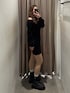 【onepiece】 153cm/Fサイズ着用しており、タイトめなシルエットですが伸縮性あり。ミニ丈なので、ロングブーツ合わせもおすすめです♡ 【shoes】 普段の22.5cm着用で、横幅広めな私でもピッタリでした!前も高さあるので傾斜なく安定感がありとても軽く履きやすいです!