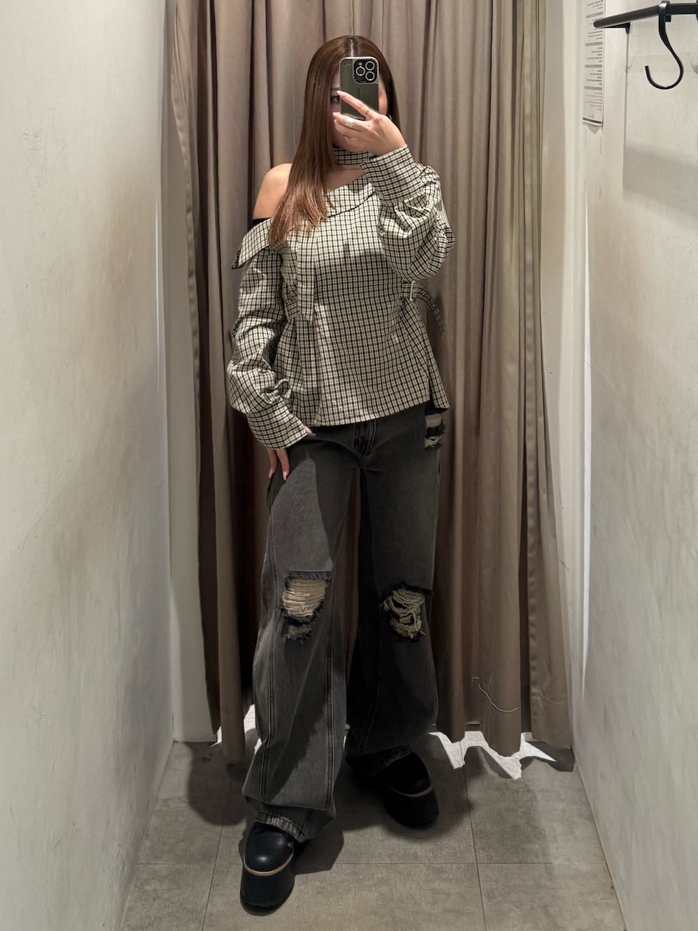 【shirt】 153cm/Fサイズ着用しており、ウエストマーク絞れるのでボディライン◎ワンショルで首元にチョーカーが付いているので露出感少なくしまってくれます! 【denim】 153cm/Sサイズ着用しており、流行りのコクーンシルエットでダボッとしすぎずスタイルアップ効果〇低身長さんは厚底合わせがおすすめです! 【shoes】 普段の22.5cm着用で、横幅広めな私でもピッタリでした!前も高さあるので傾斜なく安定感がありとても軽く履きやすいです!