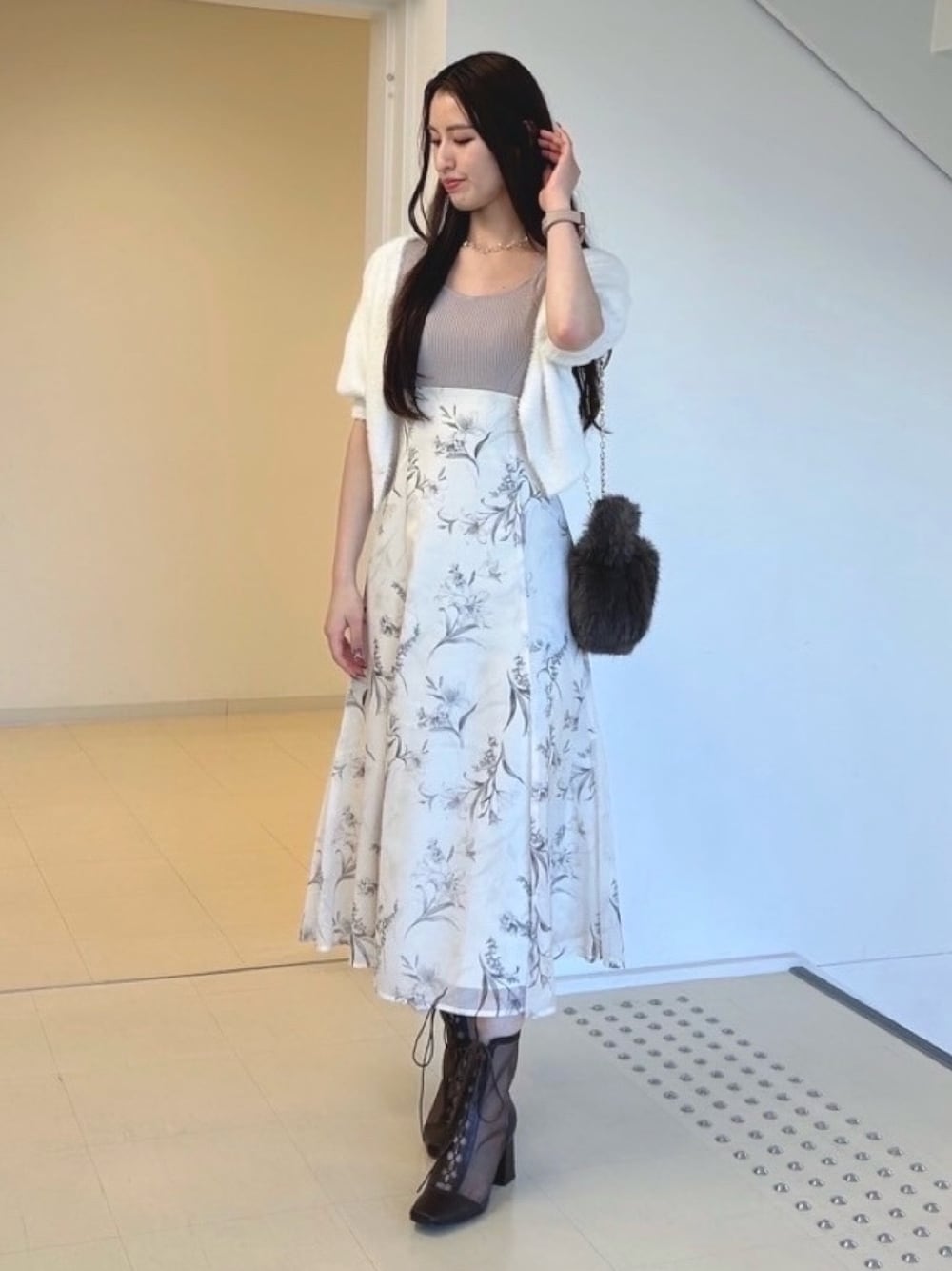 初秋のデート服 🍁♡ 【ワンピース】 バックレースで後ろが絞れるデザイン&ハイウエストマーク♡ 下半身をカバーしながらスタイルアップできます。 【シャギーカーデ】 ご自宅でお手入れできる楽チンニット 🧵 ボタンをしめればトップスにもなるので着回しも抜群です。 【ブーツ】 24.5cmで38着用です。 シアーブーツなら素足で履けて抜け感も出せます! 寒くなってきたら靴下合わせても可愛いですよ 🧦 【バッグ】 秋冬のコーデにファーアイテムはマスト♥️ 小物になら取り入れやすいので、シンプルなコーデにアクセントで持つのがおすすめです。 𝙄𝙣𝙨𝙩𝙖𝙜𝙧𝙖𝙢❥ @mercuryduo_ayamo