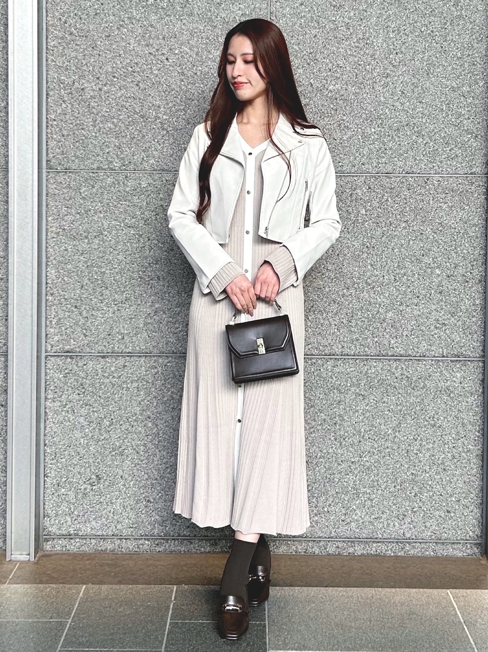 大人気だったバイカラーワンピが 少し進化してリバイバルです 👗🩷 今回のカラバリは定番のblackに加えて pink、mintの春カラーで可愛い! 柔らかくて着やすく、 体のラインを拾いすぎないワンピースなので ニットワンピース苦手な方でも挑戦して頂きたいです♡ スッキリとしたVネックでデコルテを綺麗に見せてくれます ✨️ 上からライダースを合わせると 甘辛MIXで大人っぽく着ていただけます! ブーツはソックス型なので柔らかく着脱もしやすいですよ ☺️ 小物はbrownで柔らかく揃えました 🤎🤎 《着用サイズ》 165cm/24.5cm ジャケット XS ワンピース M ブーツ 38 𝙄𝙣𝙨𝙩𝙖𝙜𝙧𝙖𝙢【 @mercuryduo_ayamo 】