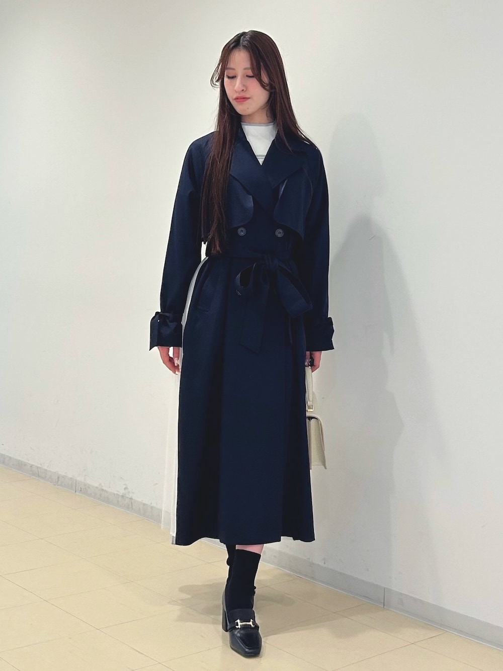 (コート) パッと見暗めに見えるネイビーですが サラッとした生地感と バックチュールがオフホワイトになっており 春らしい爽やかなトレンチです🤍 (ブーツ) 柔らかいソックスブーツに 上品なゴールドポイントが コーデを引き立たせてくれます🎗️ (バッグ) バックチュールと色味を統一して 白で合わせることで抜け感が出ます! 《着用サイズ》 165cm/24.5cm コート Mサイズ ブーツ 38 𝙄𝙣𝙨𝙩𝙖𝙜𝙧𝙖𝙢【 @mercuryduo_ayamo 】