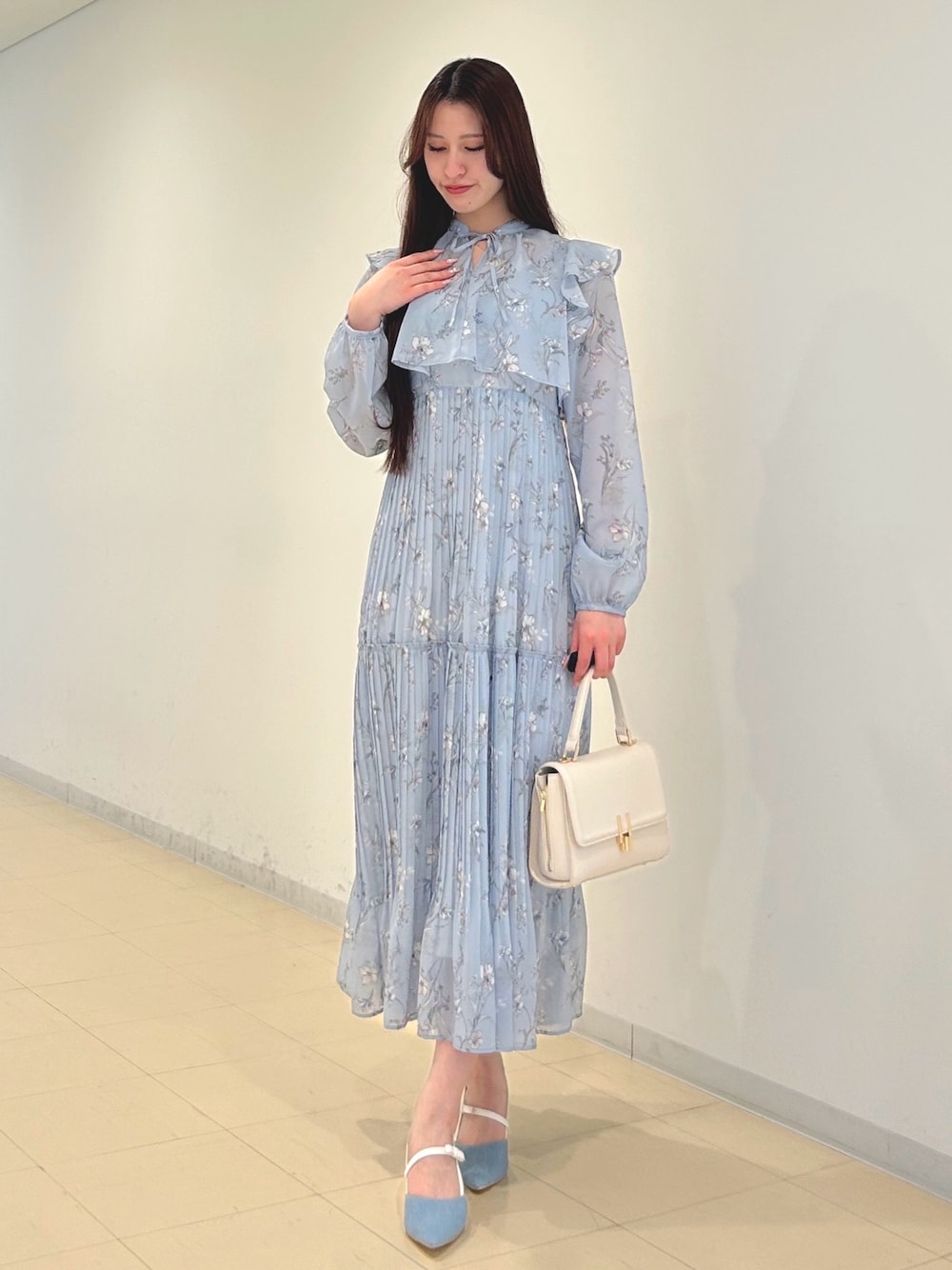 ayamo(MERCURYDUO)のワンピース「花柄フラワープリーツティアードワンピース」を使ったコーディネート