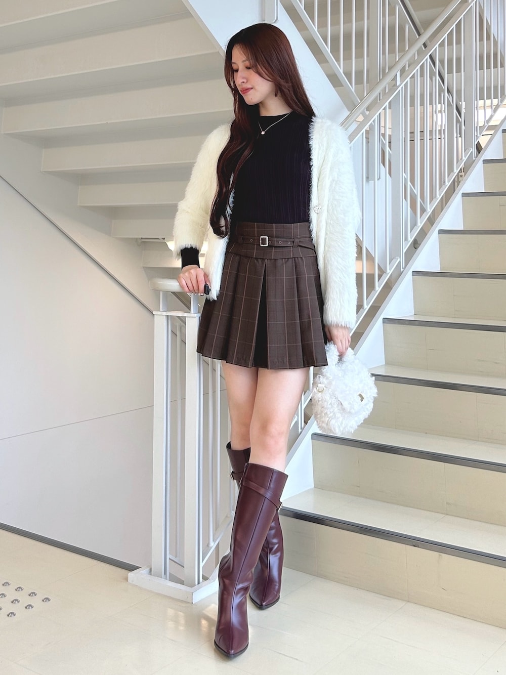 ayamo(MERCURYDUO)のスカート「ベルト付きチェックプリーツミニスカパン」を使ったコーディネート