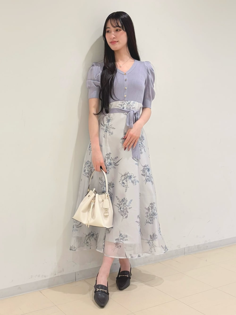 ayamo(MERCURYDUO)のワンピース「ブーケ花柄ニットドッキングワンピース」を使ったコーディネート