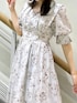 【ワンピース】 シフォン生地とランタンスリーブっぽい形のお袖がふんわり優しい印象にしてくれます🐰☁️切り替え位置が高めのため、スタイルアップ効果もバッチリです👍🏻🤍首元はスッキリしており、デコルテを綺麗に見せてくれます。 【シューズ】 足のサイズ24.0cmでMサイズがピッタリでした。きれいめコーデとの相性が抜群なこちらのパンプスは、オケージョンにもご着用いただけます。ヒールの控えめなゴールドラインとクロスストラップが足元を綺麗に見せてくれます✨筒状のヒールは安定感があり、素材も柔らかく歩きやすいです。S,M,L展開なのも嬉しいポイントです🙌🏻❤︎