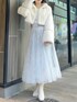 【コート】 1度触ると忘れられないふわっふわで上品なファーコート☁️お袖にパイピングのラインが入っていることで甘くなりすぎないデザインになっています。甘めが好きな方はお袖を1回折るのがおすすめです❤︎ショート丈で着膨れする心配もなくスタイルアップさせてくれます!フロントには下までしっかりとホックが付いており、防寒対策もバッチリです🫶🏻ビットを全て閉めても首元に少し空間ができるため、首詰まりが苦手な方でも着やすいです! 【トップス】 オフショルと2WAYで着れる、色っぽさと甘さのバランスが絶妙なニットトップス。オフショルで着てもピタッと肌にフィットしてくれるため、ずり落ちてくる心配もありません。首元の開きがデコルテを美しく、フレアスリーブで腕をスラっと見せてくれます◎胸元のクロスデザインは立体感を出してくれ、華奢見え間違いなしです✨ 【スカート】 店頭でも大人気の高級感と華やかさのあるスカート💠今季トレンドのスパンコールでチェック柄が作られており、特別感のある1枚です❄️照明の下でも綺麗ですが、自然光に当たるとまるで水面に反射する光のようにキラキラと光ります💭🫧チュール素材でとっても軽く、動くたびにふわっと揺れて躍動感を演出してくれます。 【シューズ】 足のサイズ24.0cmでMサイズがぴったりでした!ミドル丈のブーツは様々なボトムスとの相性が良いので、1足あるととっても万能です!しっかりと横幅のあるヒールで安定感がありますが、サイドから見ると細めで華奢に見せてくれます。ストレッチ性がありやわらかく、長時間歩いても疲れにくいです!