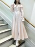 【ワンピース】 着るだけで一気に春を感じられるシャツワンピース🌸肩紐調節が可能でサイズも豊富なため、幅広い方にご着用いただきやすいアイテムです✨タックデザインがウエストをキュッと引き締め、胸元と腰回りにはゆとりができ楽にご着用いただけます。フレアシルエットのさらっとした生地感で体のラインを拾いにくく、ペチコート付のため透けの心配もありません◎ 【シューズ】 足のサイズ24.0cmでMサイズがピッタリでした!高さのあるヒールで脚をとっても綺麗に魅せてくれます🩰🤍太めのヒールとストームで高低差が少なく安定感があり、長時間歩いても疲れにくいです!メッシュ素材ですが、肌に当たる部分には裏地が付いているため痛くならず楽にご着用いただけます。重くなりがちな厚底ブーツもメッシュ素材が足元をグッと軽く抜け感のある印象にしてくれ、重めの素材のアイテムと合わせてもバランス良くまとまります👏🏻✨