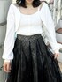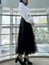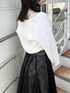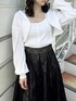 【トップス】 やわらかくやさしい肌あたりのカーデとキャミのアンサンブルで、単品使いも可能です𖤐 ̖́-首元がスッキリとしておりデコルテをきれいに魅せてくれ、小顔効果◎シンプルなデザインと使いやすいカラー展開で、どのカラーを選んでも大人っぽくご着用いただけます✨きれいめはもちろん、デニムとの相性もバッチリです! 【スカート】 店頭でも大人気の高級感と華やかさのあるスカート。今季トレンドのスパンコールでチェック柄が作られており、特別感のある1枚です💎照明の下でも綺麗ですが、自然光に当たるとまるで水面に反射する光のようにキラキラと光ります💭🫧チュール素材でとっても軽く、動くたびにふわっと揺れて躍動感を演出してくれます。 【シューズ】 足のサイズ24.0cmでMサイズがぴったりでした!足首までしっかりとホールドしてくれる3連ベルトが、足元を華奢で綺麗に魅せてくれます❤︎普段使いからきれいめなシーンまで幅広く対応可能です💭💫
