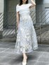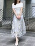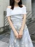 【トップス】 シャリ感のある素材のオフショルニット🐚💭胸下まで折り返された部分は細かなラメが入っており、日差しが強くなるこれからの季節に映える1枚です❤︎ 肩周りのゴムがしっかりと止まってくれるため、下がってくる心配もありません。コンパクトなシルエットでスッキリと着られて、デコルテも綺麗に見せてくれます🫧 【ボトムス】 dazzlinで定番のマイナス5キロシリーズ🪷🤍後ろのレースアップでサイズ調節が可能なため、お一人おひとりに合った1番綺麗な形でご着用いただけます!大人っぽい大きめの花柄のラメ刺繍が品のある艶やかな印象にしてくれます✨154cm/Sサイズ着用で足首がしっかりと見える丈感のため、低身長さんでも安心です◎ 【シューズ】 足のサイズ24.0cmで、Mサイズがぴったりでした!サッと履けて履き心地抜群!私も店頭で愛用しています♡Mサイズで7.5cmヒールがありますが、実際はそれほど高さは感じず安定感があります。やわらかく足にフィットしてくれるため、脱げそうになる心配もないです👍🏻💫ヒール部分はクリアになっており足元を軽い印象にしてくれます!