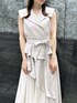 【ワンピース】 1枚できまるおしゃれ上級者ワンピ💃🏻❤︎少しゆったりめで肌との間に程よく空間ができるため、夏でも涼しくご着用いただけます!ニットやシアートップスを中に着ると秋までの長い期間お楽しみいただけます!襟が肩にかかるデザインで、肩周りのカバーもしてくれ、華奢に見せてくれます◎ 【シューズ】 足のサイズ24.0cmでMサイズがピッタリでした!やわらかくクッション性があり、歩きやすさ抜群です!◎シルバーやブラックのお色味でも、若干丸みのあるつま先が強さを抑えて優しい印象にしてくれます☁️︎ストラップは甲の高さに応じて調節可能です。