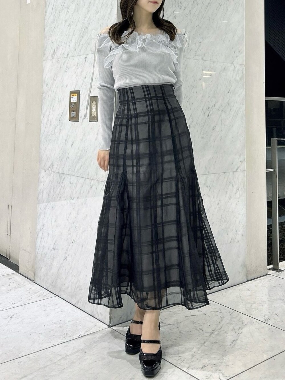 kaho(dazzlin)のスカート「シアーチェックセミフレアースカート」を使ったコーディネート