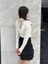 【トップス】 シンプルなフロントデザインと大胆に開いたバックデザインのギャップが楽しめる1枚。バックはV字に開いているため、すっきりと見せてくれます。開いた部分にはシアーの布が1枚かかっており、フィルターの役割を果たしてくれます。 【ボトムス】 一見スカートにも見えますが、パンツになっているため安心してご着用いただけます!程よいボリュームで台形シルエットは崩さず意外にもコンパクトに見せてくれます。 【シューズ】 前後がV字にカットされており、スッキリと華奢見えするウエスタンブーツ。膝まで隠れないため、低身長さんでも履きやすいデザインです。太さのあるヒールで安定感抜群です。足のサイズ24.0cmでMサイズがぴったりでした!