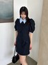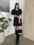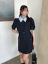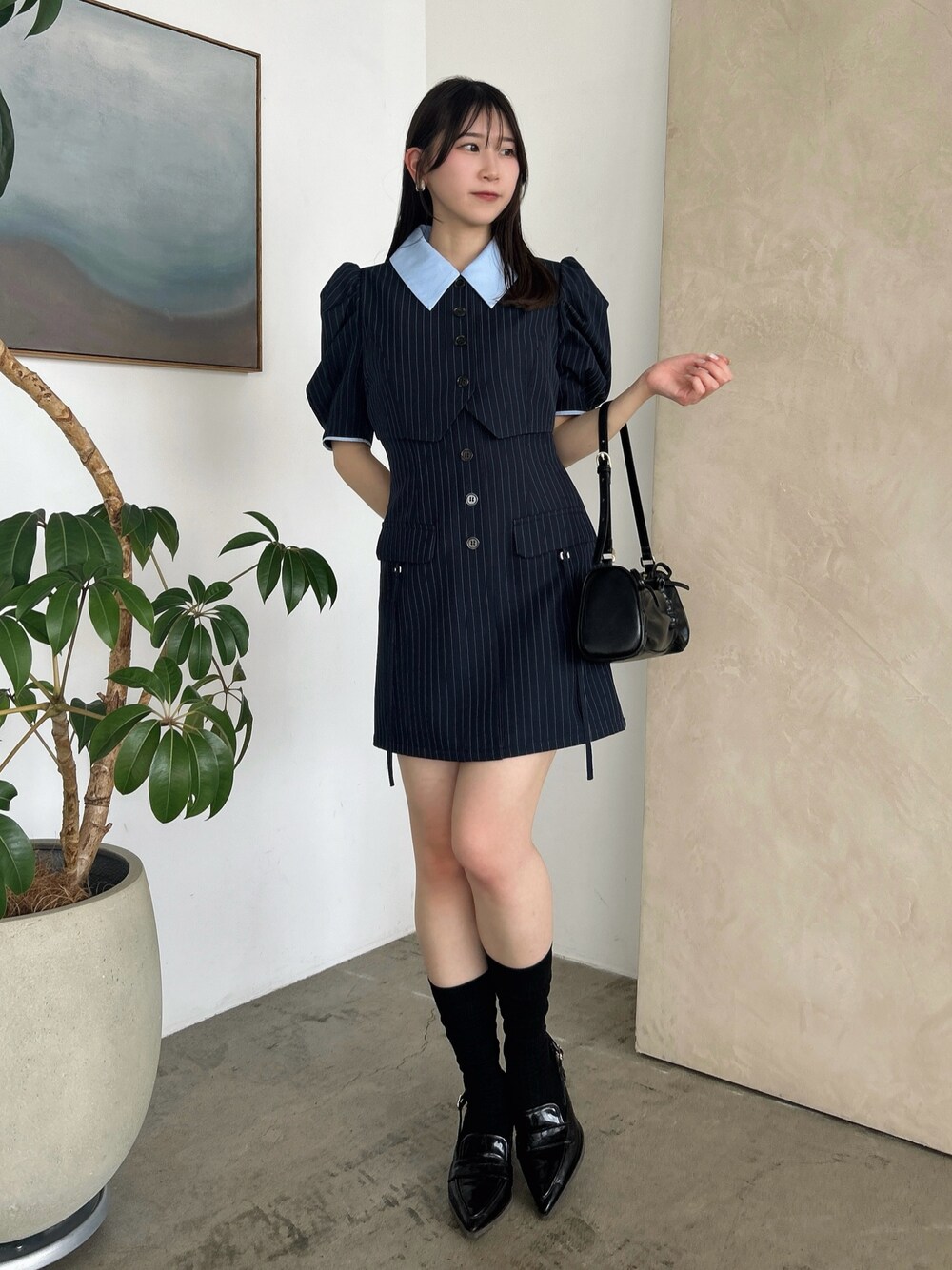 【ワンピース】 まるでスーツのようなカッチリとしたシャープな印象もありながら、ふわっと丸いボリュームスリーブで可愛さもあるバランスが絶妙なワンピース。袖丈長めで二の腕もしっかりとカバーしてくれます◎セットアップ風のジャケット部分は短めのデザインのため、グッと目線を上げてスタイルアップさせてくれます。 【シューズ】 踵が開いたデザインで、ローファーでも重たくなりすぎないのが特徴です。ソックス合わせもおすすめです⟡.·*. 足のサイズ24.0cmでMサイズがぴったりでした!