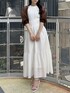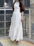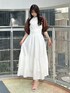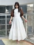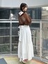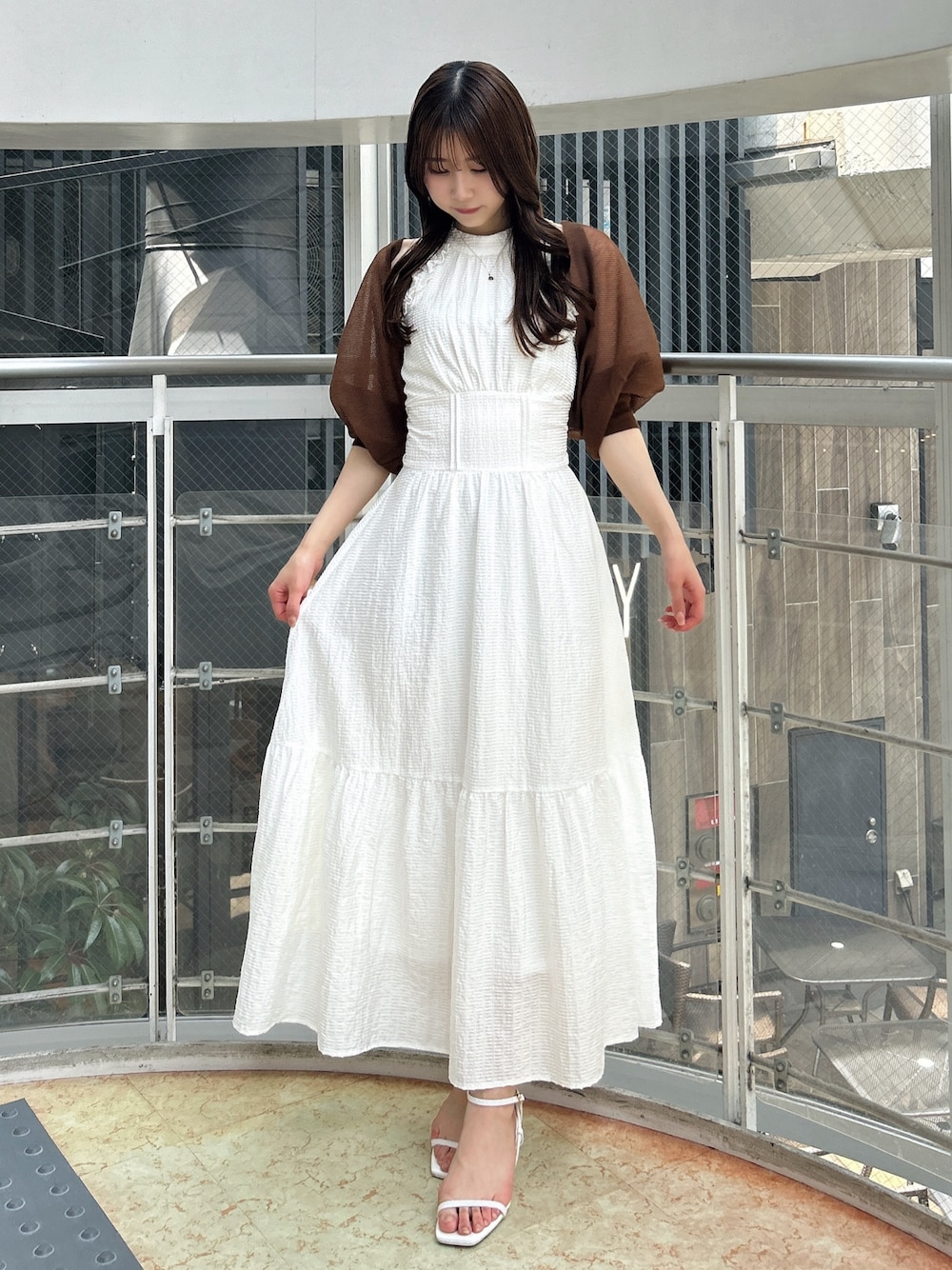 【カーディガン】 5分袖で夏の軽い羽織りとして使いやすいメッシュ素材のボレロ。ふんわりとしたお袖が二の腕をしっかりとカバーしてくれます。フロントにボタンやリボン等の装飾がないため、シンプルにすっきりとご着用いただけます。 【ワンピース】 展示会でも大人気だったワンピース。アメリカンスリーブで首が長く見える効果があり、肩のラインを綺麗に見せてくれます。アームホールにはフリルが付いており、露出感を抑え可愛さをプラスしてくれます。コルセット風の切り替えでウエストマークがしっかりとでき、バックリボンでウエスト調節も可能です◎154cm / Sサイズ着用で足首にかかる程度の長さで、フラットシューズでも問題なくご着用いただけます。 【シューズ】 シンプルなデザインで、カジュアルからフェミニンまで幅広く使える万能パンプス。華奢な細いストラップでカラーの面積が少ないため、カラーアイテムに挑戦したい方にもおすすめです。着用のオフホワイトのみラメが入っています。足のサイズ24.0cmでMサイズがピッタリでした。