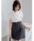 【トップス】 それぞれ異なるデザインボタンがポイントのブラウス。ボタンを留めると簡単にドレープを作り出せるため、着るだけでおしゃれ度がアップします⟡.·*.ボリュームのあるパフスリーブが女性らしく華奢な印象を与えてくれます。ボトムス問わず着回しがしやすいため、オンオフで使える万能ブラウスです。 【スカート】 dazzlinで定番のコルセットスカート。バックのレースアップでウエスト調節が可能なため、ゆるすぎたりきつすぎることなく1番綺麗なシルエットでご着用いただけます。表情のあるフェザーの糸を使用し、女性らしく華やかな印象にしてくれます。154cm / Sサイズ着用で足首がしっかりと見える丈のため、低身長さんも安心のサイズ感です。