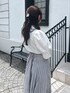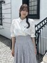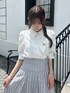 【トップス】 それぞれ異なるデザインボタンがポイントのブラウス。ボタンを留めると簡単にドレープを作り出せるため、着るだけでおしゃれ度がアップします⟡.·*.ボリュームのあるパフスリーブが女性らしく華奢な印象を与えてくれます。ボトムス問わず着回しがしやすいため、オンオフで使える万能ブラウスです。 【スカート】 dazzlinで定番のコルセットスカート。バックのレースアップでウエスト調節が可能なため、ゆるすぎたりきつすぎることなく1番綺麗なシルエットでご着用いただけます。表情のあるフェザーの糸を使用し、女性らしく華やかな印象にしてくれます。154cm / Sサイズ着用で足首がしっかりと見える丈のため、低身長さんも安心のサイズ感です。