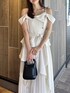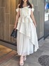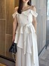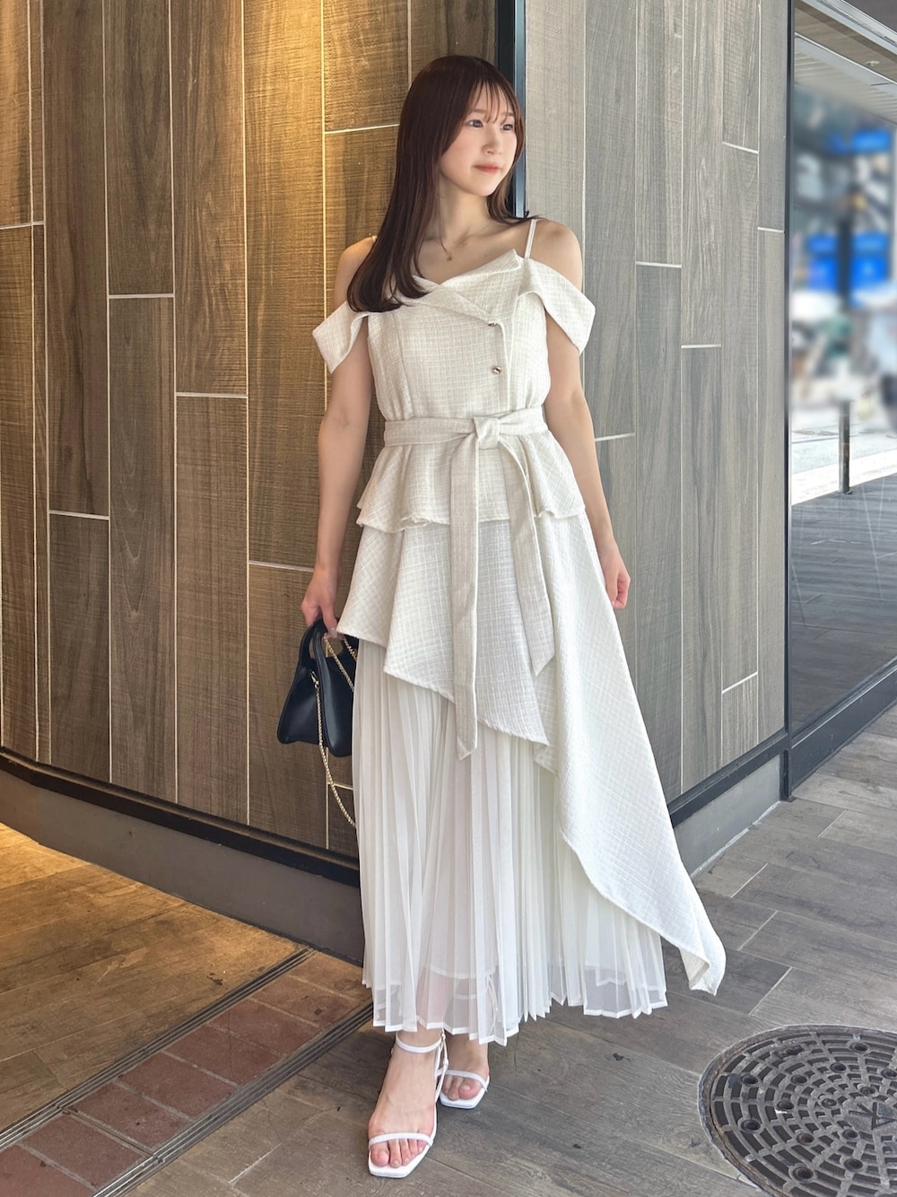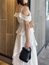 【ワンピース】 大人気のワンピースからオフショルver.が登場! 綺麗さと可愛さを兼ね備えた、1枚で着映えするアイテム。154cm / Sサイズ着用で足首にかかる程度の長さで、ゆったりとしたサイズのためレイヤードもしやすく、インナー次第でロングシーズンご着用いただけます◎ 【シューズ】 シンプルなデザインで、カジュアルからフェミニンまで幅広く使える万能パンプス。華奢な細いストラップでカラーの面積が少ないため、カラーアイテムに挑戦したい方にもおすすめです。着用のオフホワイトのみラメが入っています。足のサイズ24.0cmでMサイズがピッタリでした。