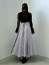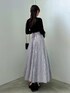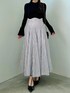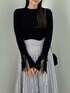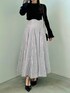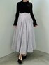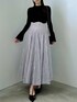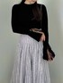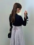 【トップス】 dazzlinの毎年定番ニット。何を着るか迷ったらこれを着ればOK!な着回し力抜群な万能アイテムです。スパンコールの付いたレースの袖口が、手元を華やかに1枚で主役になってくれ、薄手のためレイヤードもお楽しみいただけます。 【スカート】 dazzlinで人気のコルセットスカート。バックのレースアップでウエスト調節が可能なため、ゆるすぎたりきつすぎることなく1番綺麗なシルエットでご着用いただけます。表情のあるフェザーの糸を使用し、女性らしく華やかな印象にしてくれます。154cm / Sサイズ着用で足首がしっかりと見える丈のため、低身長さんも安心のサイズ感です。