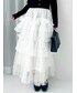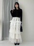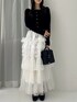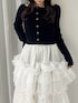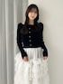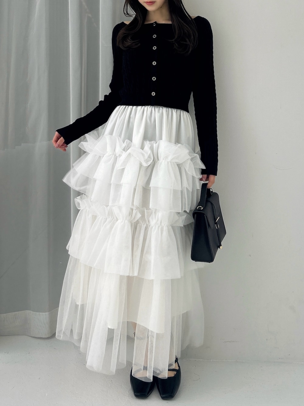 【トップス】 縦ラインの出るケーブル編みで、すっきりとした印象のニットトップス。スクエアネックでデコルテを綺麗に見せてくれ、ボウタイブラウスなどを重ねてレイヤードコーデもお楽しみいただけます。丈はおへそより少し長めで、インでもアウトでもご着用いただけます。 【スカート】 ふわっとボリューミーな主役級チュールスカート。上向きのフリルが目線を上にあげ、ボリュームがありながらもスタイルアップが叶います。デイリー使いからお出かけシーンまで幅広く活躍してくれる特別感たっぷりの1枚です。 【シューズ】 足のサイズ24.0cmでMサイズがピッタリでした。甲のクロスデザインが足元を華奢に見せてくれ、円柱のヒールで安定感も抜群です。尖りのないスクエアトゥのデザインで、日常使いからオケージョンシーンまでお使いいただけます。