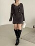 【ジャケット】 ふんわりとあたたかみのある風合いのニットジャケット。ゴールドボタンが華やかさをプラスし、上品な印象に。丈をショートにすることで程よい抜け感を演出し、デニムやチュールスカートなど幅広く合わせやすい1枚です。 【ワンピース】 フィット感のあるニットがやさしく体のラインを拾ってくれ、女性らしさの際立つミニワンピース。アジャスター付きのため、丈の調節も可能です◎すっきりとしたネックラインで薄手のインナーも着られるため、ボウタイブラウスなどを合わせてレイヤードコーデもお楽しみいただけます。 【シューズ】 シンプルで使いやすい王道ロングブーツ。やさしく馴染み、脚をまっすぐに見せてくれます。太めのヒールで安定感があり、スタイルアップが叶います。足のサイズ24.0cmでMサイズがぴったりでした。