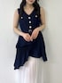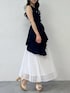 【ワンピース】 1枚で着映えする異素材ドッキングのワンピース。着用のインディゴはデニム風のさらっとした素材で軽い着心地を叶えてくれ、シワになりにくいのも嬉しいポイントです。スカート部分は消しプリーツが施されており、立体感のあるシルエットを作り出してくれます。154cm / Sサイズ着用で足首にかかる程度の長さのため、フラットシューズでも問題なくご着用いただけます◎