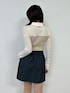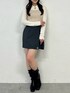 【トップス】 1枚でレイヤード風の着こなしが楽しめるニットトップス。首元〜腕はほんのりと透けるシアー素材になっており、抜け感を演出してくれます。コンパクトなサイズ感ですっきりと華奢見えし、ボトムス問わず着回しやすいアイテムです。バックのプレートがさりげなく高級感を高めてくれます。 【スカート】 シンプルながらも一癖あるデザインミニスカート。腰元のベルトがすっきりとした印象を与え、サイズ調整も可能です◎裾にはオリジナルのプレートが付いており、特別感のある1枚。ジャストウエストのため、トップス問わず着回しやすいのも嬉しいポイントです。 【シューズ】 足のサイズ24.0cmでMサイズがピッタリでした!ベルトがワンポイントになり、足元を引き締めて見せてくれます。ミニ丈にも合わせやすいミドル丈で、幅広いコーデに迷わず使いやすいです◎