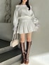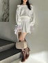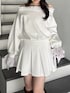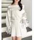 【トップス】 スウェットにシャツをドッキングした今年らしいトップス。ラフなスウェットも袖口の大きなリボンが特別感を高めてくれます。やからかくもちもちとしたパウダリーなダンボール素材で、きれいめなアイテムとも合わせやすいです◎首元は3wayで着用可能なため、コーデに合わせた着こなしをお楽しみいただけます。 【ボトムス】 もちっとしたダンボール素材できれいめ見えするスウェットミニスカート。ボックスプリーツが腰位置より少し下から広がり始めるため、腰回りをすっきりと見せてくれます。バックはゴム仕様でウエストにやさしく馴染み、フィット感抜群できれいなシルエットを保ってくれます。 【シューズ】 シンプルで使いやすい王道ロングブーツ。やさしく馴染み、脚をまっすぐに見せてくれます。太めのヒールで安定感があり、スタイルアップが叶います。足のサイズ24.0cmでMサイズがぴったりでした。