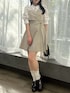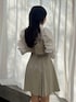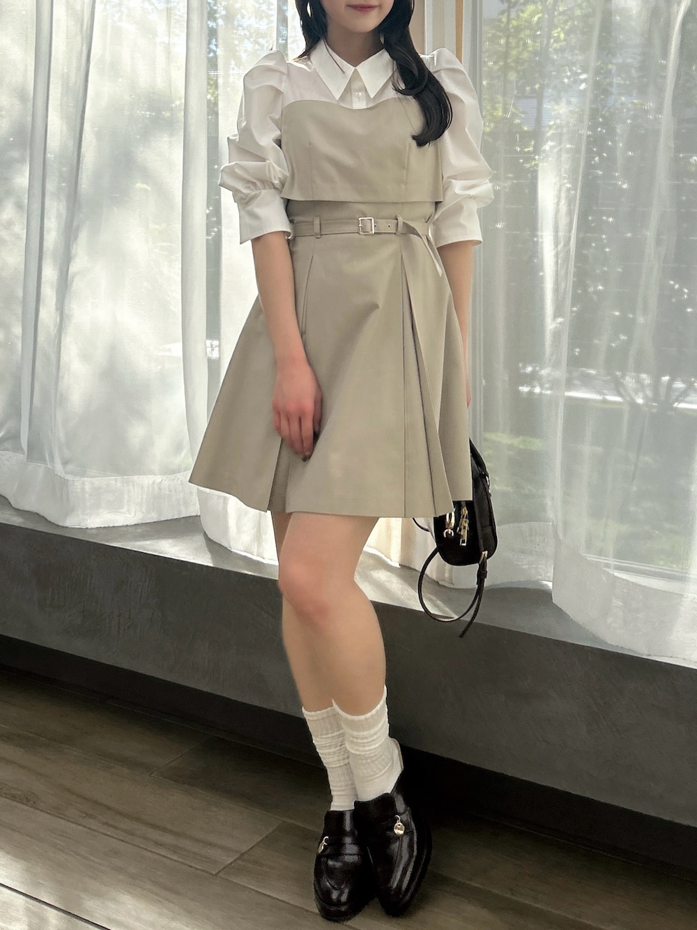 【ワンピース】 1枚でレイヤードコーデが完成する着映えバッチリなミニワンピース。ボックスプリーツが甘さを抑えた知的な印象にしてくれます。袖丈長めで二の腕のカバーを叶えつつ、今の時期から夏まで長期でご着用いただけます。胸元のリボンは取り外しが可能で、気分に合わせた着こなしをお楽しみいただけます。 【シューズ】 トレンドのサボシューズ。安定感のある太めヒールと厚底で足元をしっかりと盛りつつ、踵がオープンのため重たい印象にならず、抜け感を演出してくれます。ゴールドのチャームが程よいアクセントになり、品のある1足です。 【バッグ】 コロンとしたシルエットが愛らしいミニボストンバッグ。ポイントでdazzlinのオリジナルロゴを入れ、特別感を演出。取り外し可能なショルダーベルト付きで、2WAYでご使用いただけます。