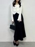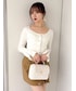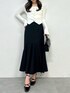 【トップス】 1枚でレイヤードスタイルが完成するニットトップス。立体的なフロントデザインがシンプルながらも女性らしく華やかな印象に。袖口はフレアになっており、手元まで美しく見せてくれます。 【スカート】 フロントのカーブラインが美しいマーメイドスカート。バックはレースアップになっており、ご自身のサイズに合わせてウエストの調整が可能です。シンプルなデザインで、オンオフ、シーン問わずに着られる万能アイテムです。154cm / Sサイズ着用で足首がしっかりと見える丈感のため、フラットシューズでも問題なくご着用いただけます◎ 【シューズ】 足のサイズ24.0cmでMサイズがピッタリでした。甲のクロスデザインが足元を華奢に見せてくれ、円柱のヒールで安定感も抜群です。尖りのないスクエアトゥのデザインで、日常使いからオケージョンシーンまでお使いいただけます。