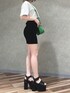 【トップス】中がタンクトップになっていて繋がっているトップスです。おへそより上の丈感で低身長には相性ぴったしのミニ丈トップスです🫶🏽 【ボトムス】リブニット素材のスカートはタイトで女性らしさを出してくれるアイテムです。中がパンツになっているので安心して履いて頂けます。トップスの幅が広くなっているため足が華奢に見える効果もあります◎ 【シューズ】13センチの厚底サンダル Sサイズ着用